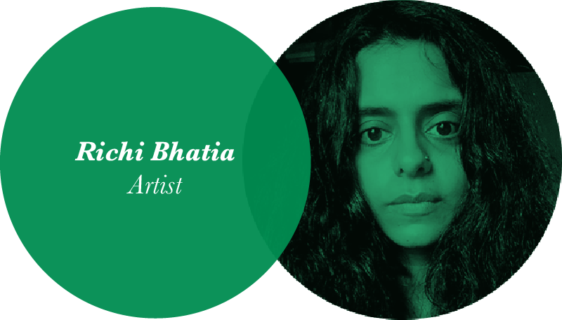 Richi Bhatia’s practice navigates between drawing, performance, installation, and food intervention. Her work ranges from extremely intuitive to protracting processes of trying to interrogate the body and its relationship to food and consumption, which often find their roots in autobiographical and immediate surroundings. Using an eco-feminist lens she explores the role of women, care, and water bodies.